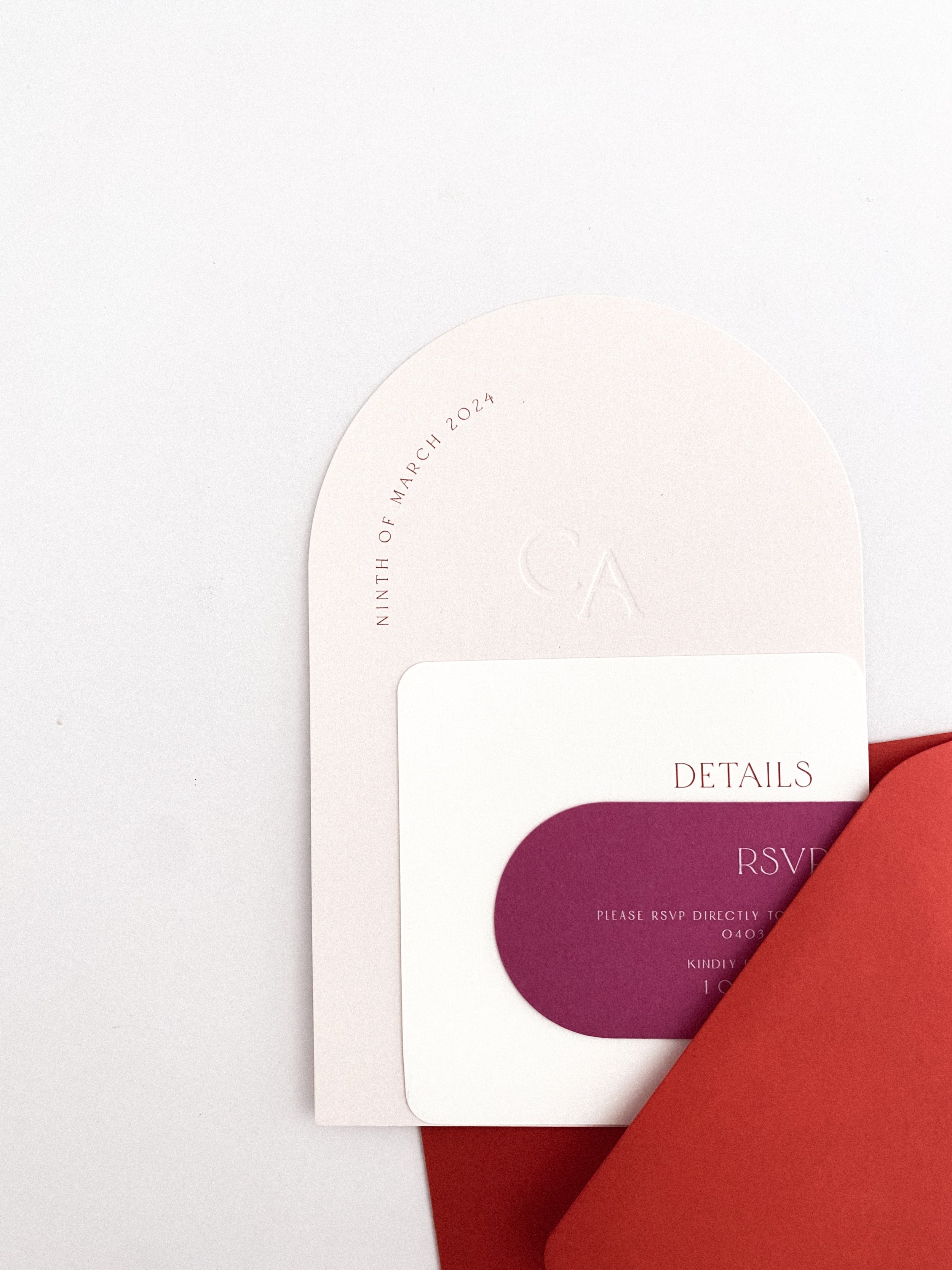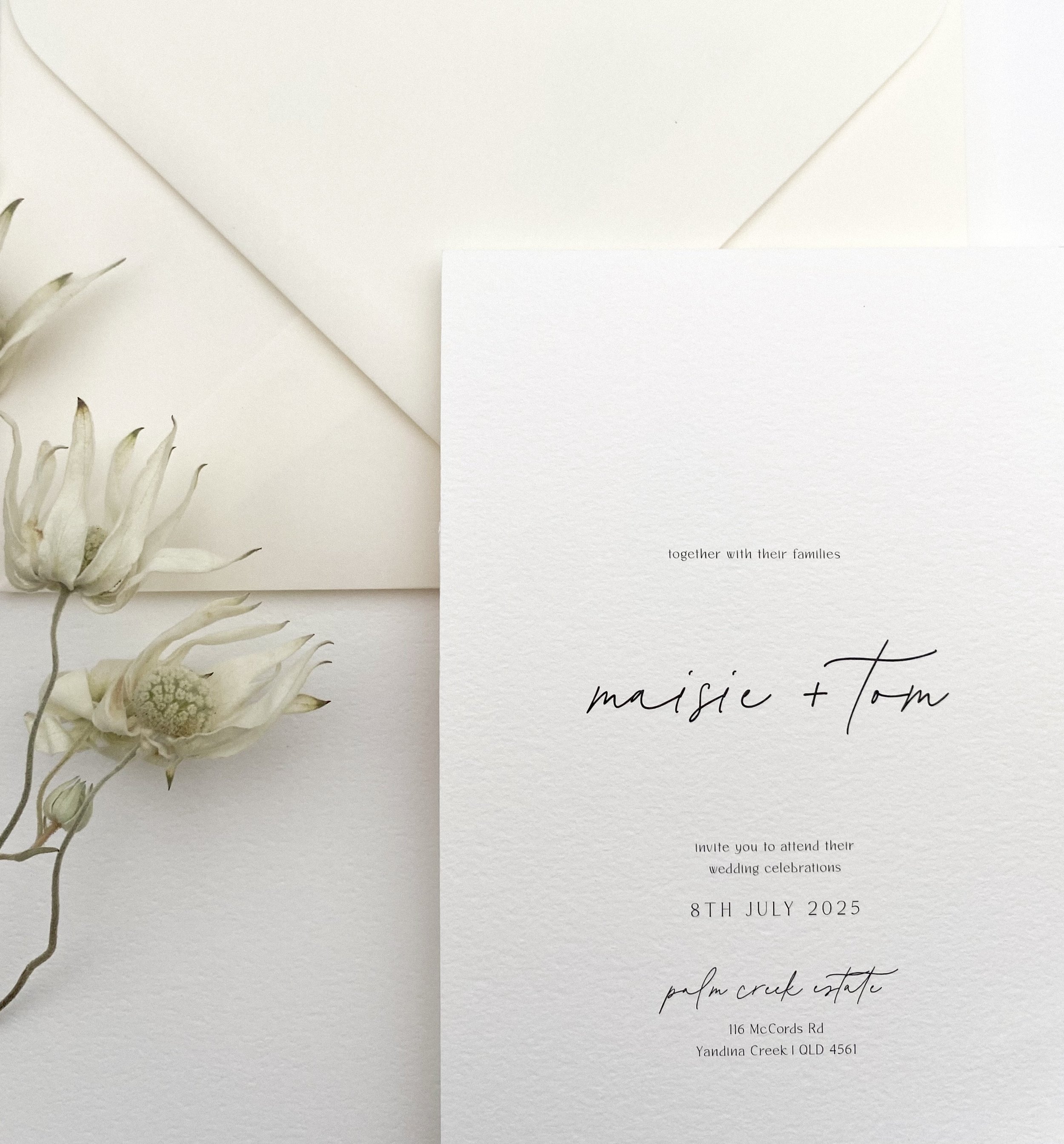 White Letter’s latest collection of semi-custom invitation suites. MONDAY is about beginnings, soft edges and tones, and narratives of early love. Choose your favourite designs and request a quote based on your specific needs and preferences. Envelope colour and included elements are customisable.